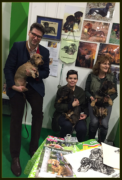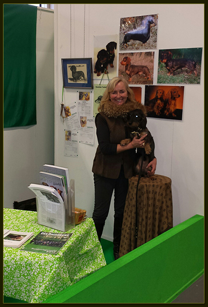Hier sind noch Impressionen von der Standbesetzung am Samstag. Dort waren von unserer Teckelgruppe Birkholz Dominic Krohne mit Bismarck, Michaela Freifrau von Godin mit Fritzi & Magdalena Schabram mit Justav vertreten ... |
