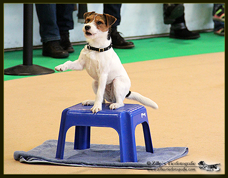 Frauchen ging mit mir über das Gelände zur Halle 26. Aber Moment mal, die Länderhallen sind doch in einer ganz anderen Richtung, habe mir zu Hause auf dem PC genau alles angesehen und die Hallennummern gemerkt. Frauchen erklärte mir dann schließlich, das Teckel in diesen Hallen nicht erwünscht sind. Na so ein Mist, hätte ich das nur vorher gewusst, aber Bitte, wenn Sie die Meinung eines erfahrenden Teckels über ihre kulinarischen Spezialitäten nicht wissen möchten, dann eben nicht. Also gingen wir zu den Tierhallen. Als wir die Halle 26, betraten suchten wir die Stände mit den Rassehundevereinen auf und Frauchen führte uns direkt zum Stand des Deutschen Teckelklub 1888 e.V. Ja, die Halle war schon sehr interessant, wir trafen Spitze, Windhunde, Havaneser, Belg. Schäferhunde, Pudel und meine Freunde, die Beagle. Außerdem waren da noch Reptilien und diverse Fische (auch sehr interessant, die Aquarien waren genau seitlich gegenüber unserem Teckelstand und da konnte ich sie genau beobachten). Unser Stand war genau gegenüber dem Ehrenring, dort wurden einige Hunderassen und Aktivitäten mit dem Hund genauer vorgestellt. Eine kleine süße Parson Russell Terrierhündin, leider habe ich ihren Namen vergessen, stellte mit ihrem Frauchen die ziemlich neue Sportart Obedience vor. Frauchen sagte, das wäre ja auch was für uns Teckel, aber ich schaute sie mit meinem Dackelblick ganz vorwurfsvoll an und dachte mir so dabei: „Vergiss es Frauchen“. Hier ist eine Wikipedia-Definition über Obedience (engl. „Gehorsam“): Obedience ist eine Hundesportart, bei der es besonders auf harmonische, schnelle und exakte Ausführung der Übungen ankommt. Obedience wird auch als „Hohe Schule“ der Unterordnung bezeichnet. Ein eingespieltes, gutes Mensch-Hund-Team ist eine Grundvoraussetzung. Bei Obedience-Prüfungen geht es nicht allein um den Gehorsam des Hundes. Es spielt auch seine Sozialverträglichkeit mit anderen Menschen und Hunden eine große Rolle.