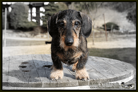 Wurftag: 28.07.2002; Farbe: dkl-saufarben; Formwert: V (Pl)
